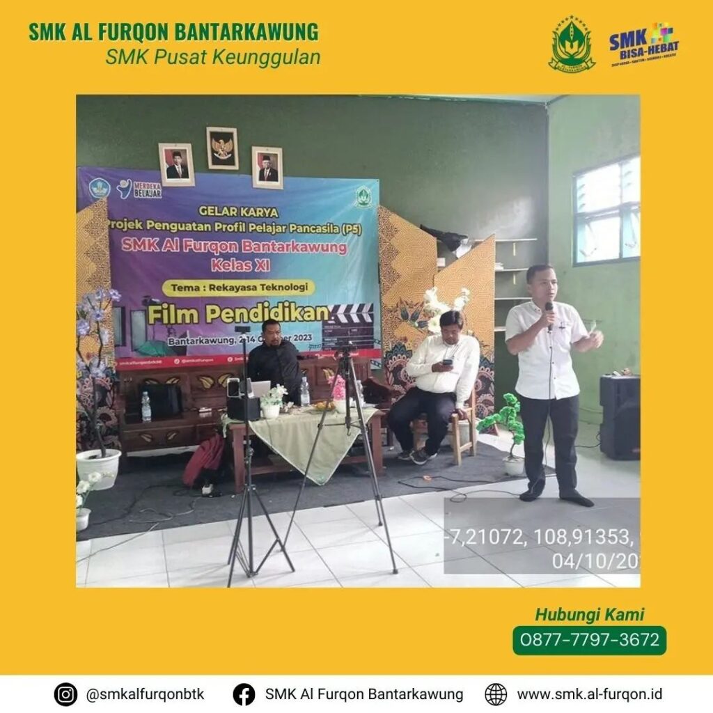 SMK Al Furqon Bantarkawung Menggelar Kegiatan Projek Penguatan Profil Pelajar Pancasila (P5) untuk kelas XI dengan Tema Rekayasa dan Teknologi dan Judul Projek adalah Film Pendidikan. Peserta didik diberikan pengetahuan tentang apa itu Film, cara membuat naskah film, bagian-bagian pekerjaan yang ada dalam pembuatan film, teknik pengambilan video sampai dengan editting video. materi tersebut diikuti…